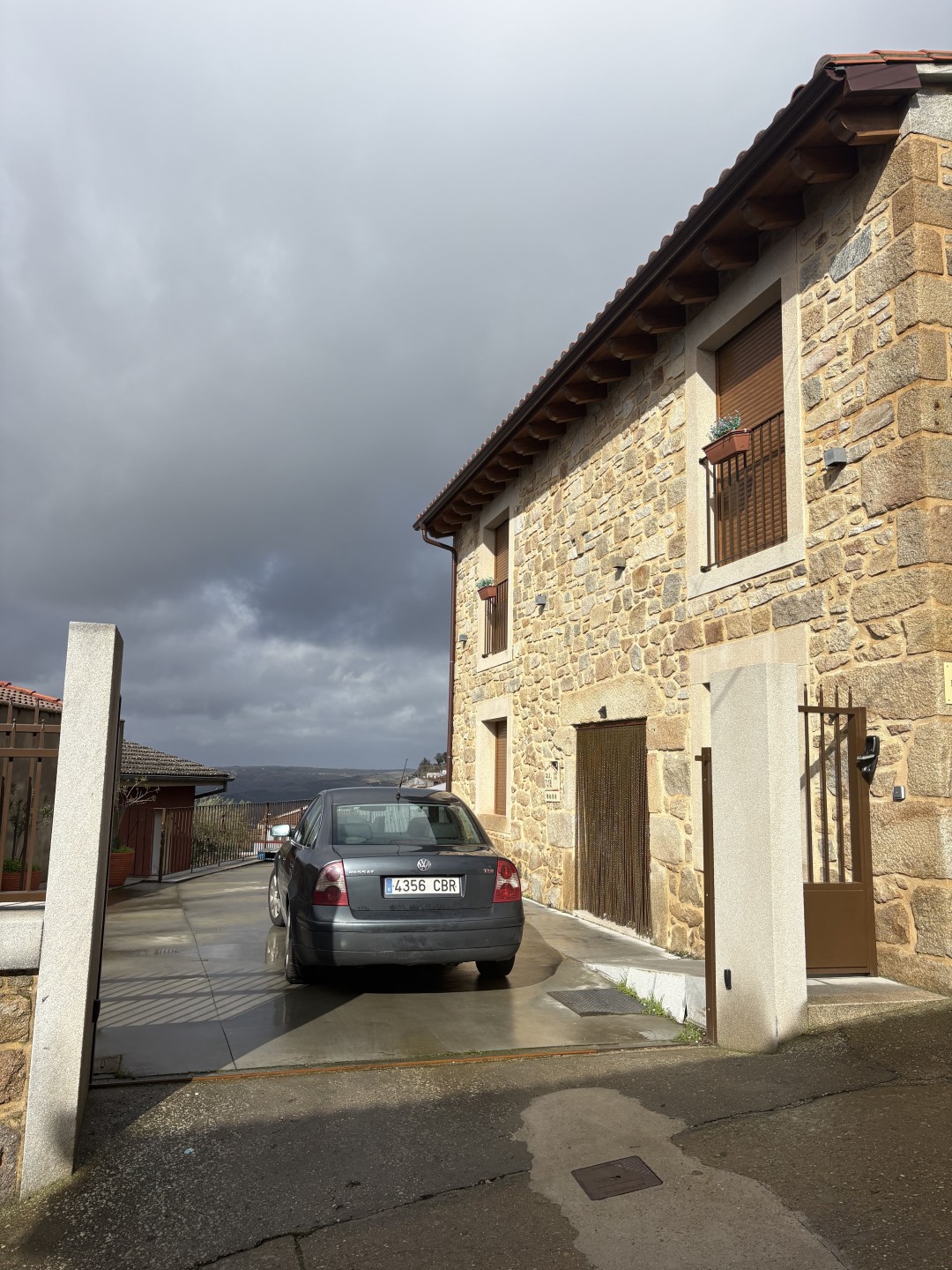 La casa dispone además de parking privado con puerta automática, un extra de comodidad poco habitual en alojamientos rurales del casco urbano.
