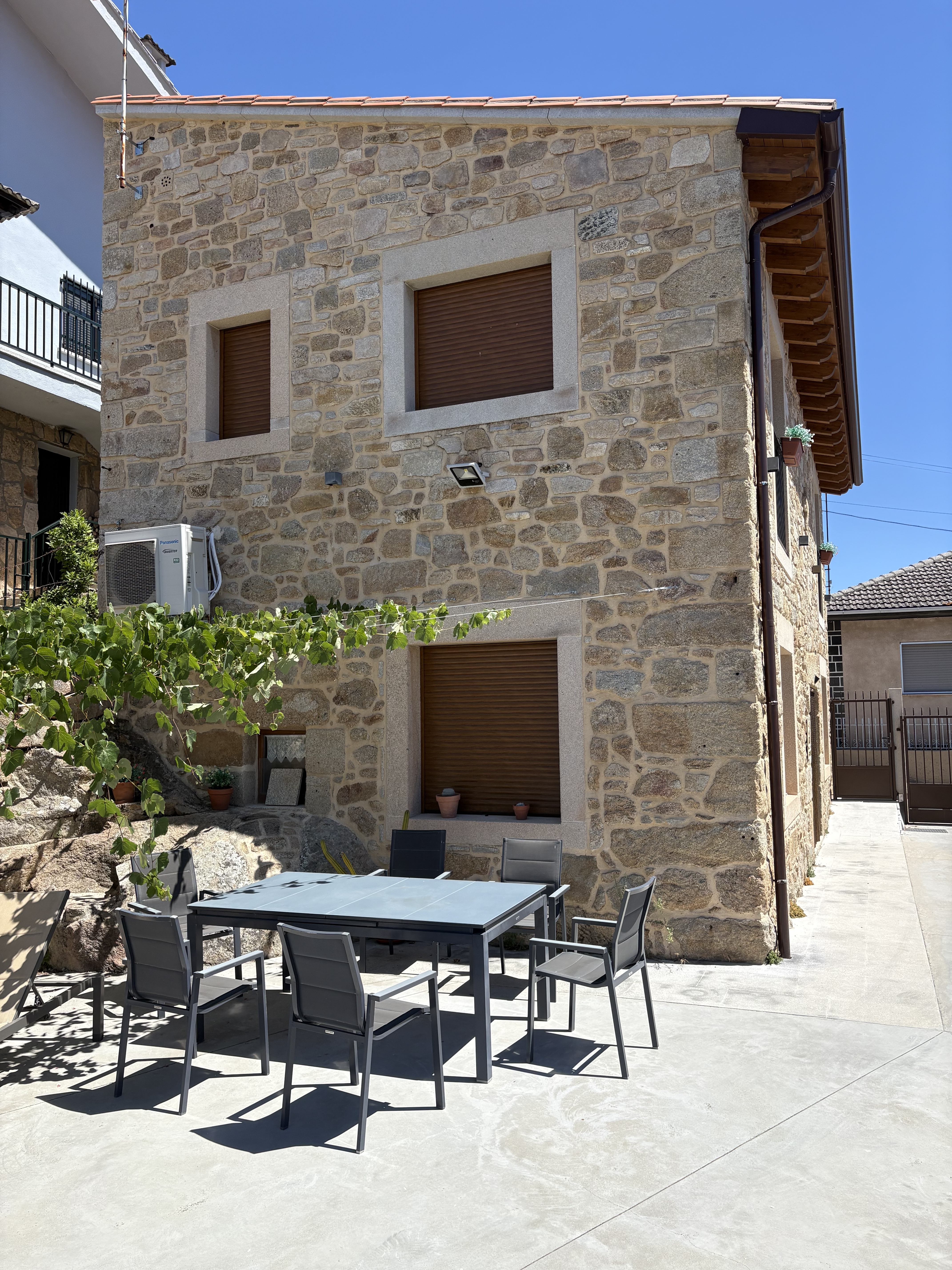 En el exterior, La Tahona cuenta con un patio privado, ideal para desayunar, comer o cenar al aire libre, y una parra con vistas despejadas desde donde contemplar amaneceres y puestas de sol inolvidables. Un espacio perfecto para desconectar y dejarse llevar por el ritmo pausado de los Arribes.